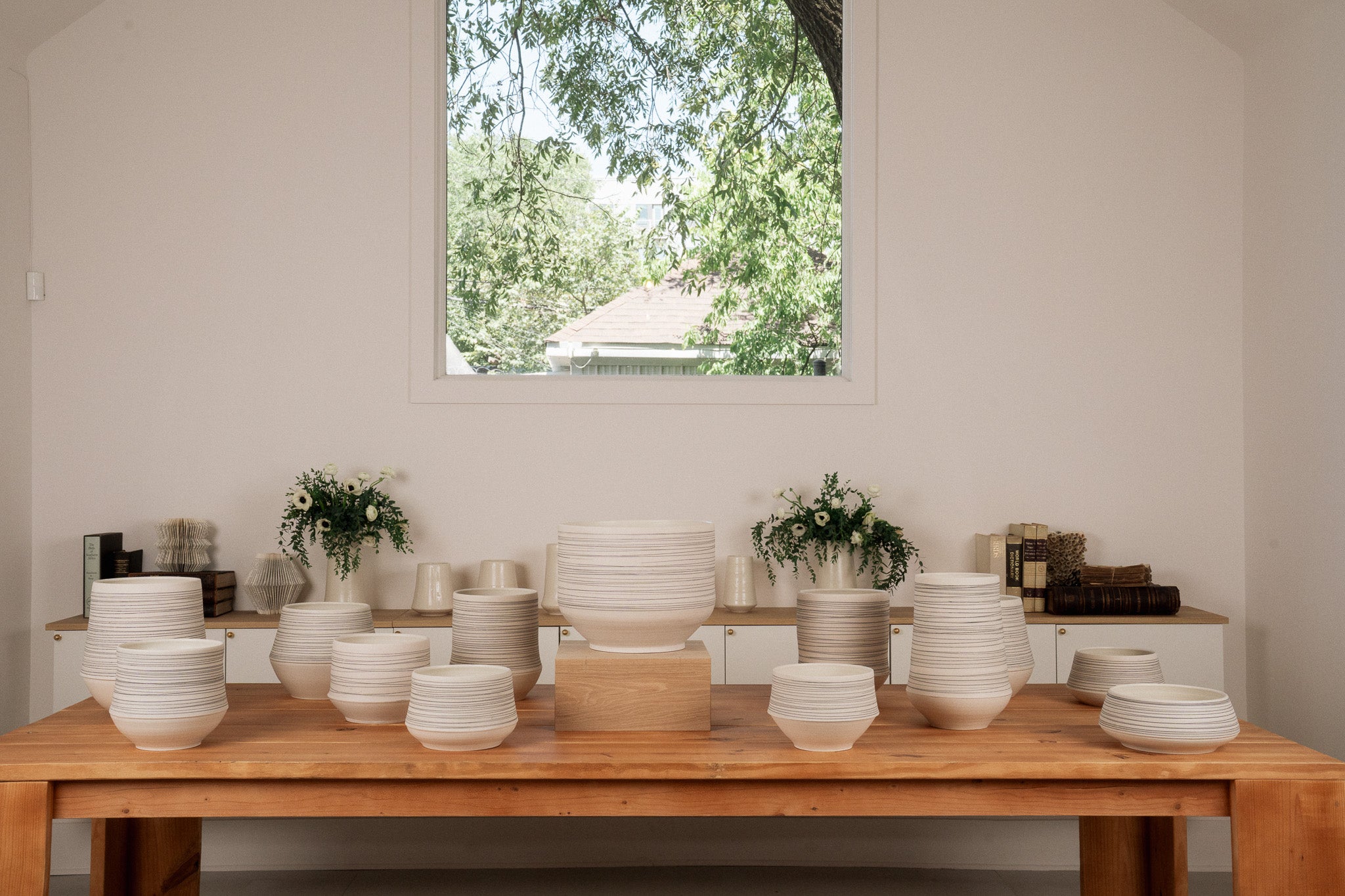 Thrown and Assembled Porcelain- Unglazed Exterior with Incised Slip Design, Matte White Glazed Interior